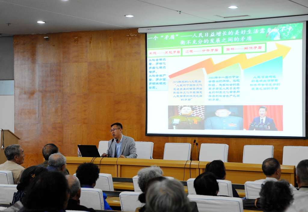 報告結束后,老同志紛紛表示,習近平新時代中國特色社會主義思想是黨的十九大報告的靈魂,對黨和國家事業的發展、對實現中華民族偉大復興中國夢,具有根本性、長遠性的指導作用。通過本次專題學習,使我們對所處的發展階段、肩負的使命任務有了更為清晰和自覺的認知,作為離退休老黨員,我們會始終與以習近平同志為核心的黨中央保持高度一致,不忘初心,牢記使命,繼續發光發熱,為學校各項事業的發展發揮作用。