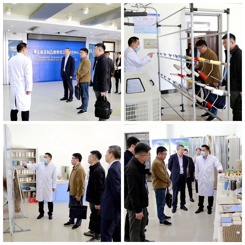 調研中,張洪波一行實地考察了我校寒區麻及制品教育部工程研究中心。輕工與紡織學院黨委書記、中心副主任宋秘釗介紹了中心開展科技創新和成果轉化等方面情況。