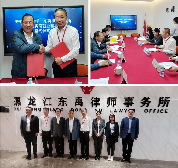 董玉庭一行第一站走訪了黑龍江東禹律師事務所,我校95級經濟法專業優秀校友高明任該所主任。座談會上,雙方簽訂了實習就業基地協議。高明校友介紹了律所的發展歷程和目前的實習就業基本情況,分享了創業心得及感悟,希望母校能夠在法學領域培養和輸送更多優秀的人才。董玉庭表示,就業實習基地為畢業生與企業對接提供了良好的平臺,是對畢業生就業渠道的重要補充,學校將以此次調研為契機,積極拓展校企協同育人新路徑,不斷提高就業人才培養與企業崗位需求契合度,為畢業生高質量充分就業奠定堅實基礎。