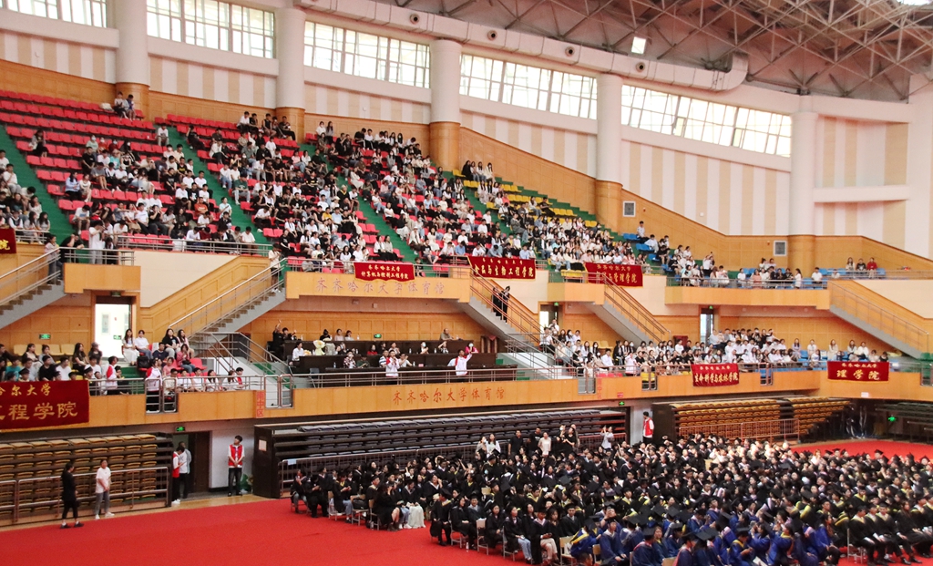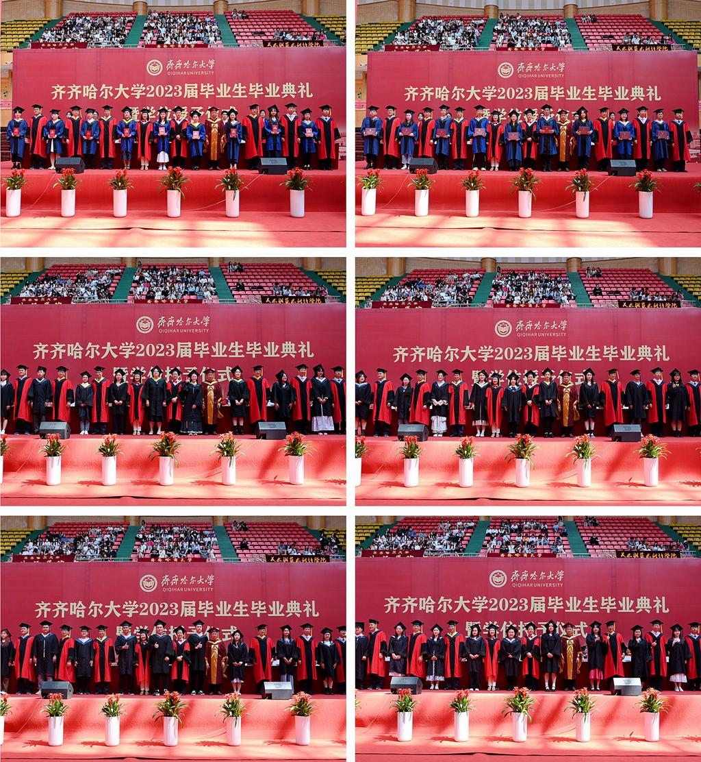 6月14日上午,齊齊哈爾大學2023屆學生畢業典禮暨學位授予儀式在校體育館隆重舉行,校領導陳桂芝、董玉庭、齊宏偉、張文治、王剛、叢喜權、張樹軍、李奇楠、陶佰睿出席典禮,學校學位評定委員會成員、工業分析專業1995屆校友李峰、學生家長代表、2023屆優秀畢業生代表和在校師生代表共同參加了此次盛典。畢業典禮由副校長王剛主持。