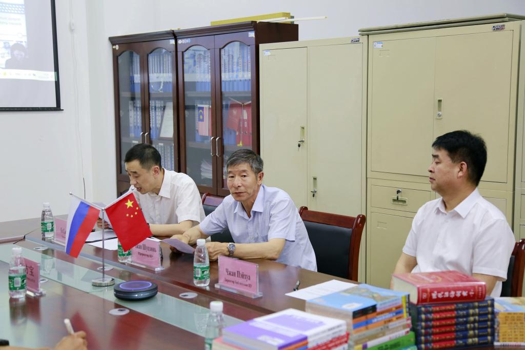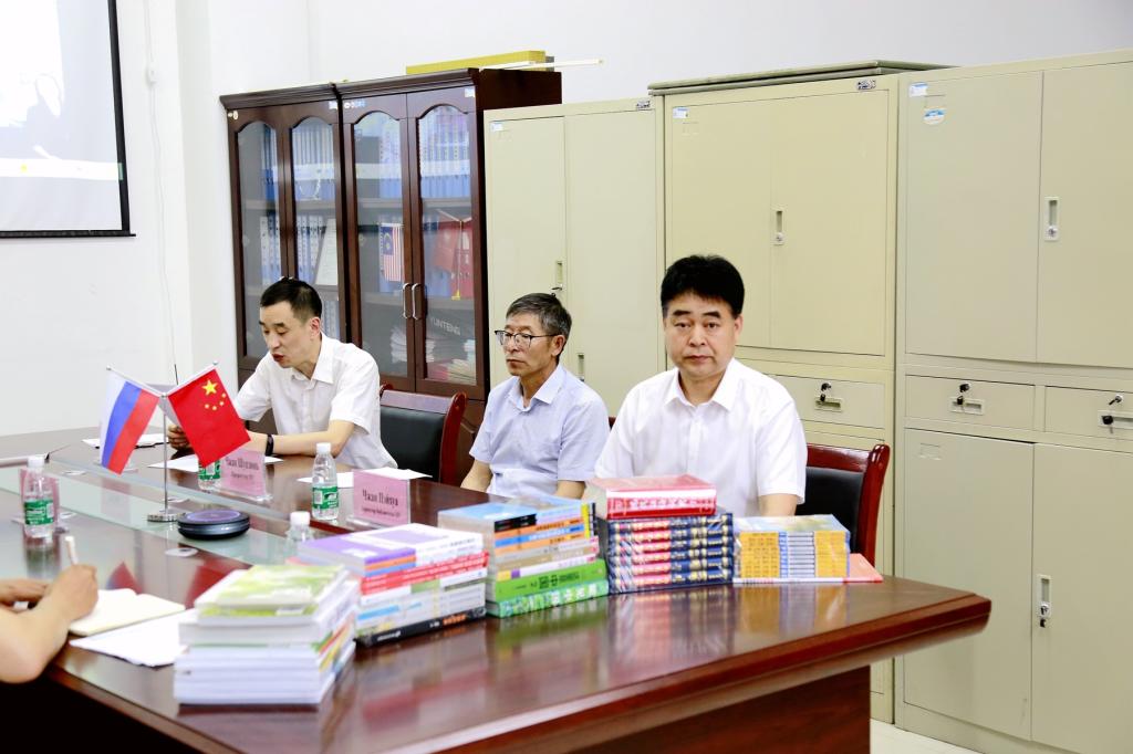 為推動(dòng)中俄高校教育交流與合作,在俄羅斯哈巴羅夫斯克市國(guó)際關(guān)系局和齊齊哈爾市人民政府外事辦公室的積極協(xié)調(diào)下,6月20日下午,我校在德潤(rùn)大廈國(guó)際交流合作處會(huì)議室與俄羅斯遠(yuǎn)東國(guó)立交通大學(xué)共同舉辦“攜手進(jìn)步階梯 共享文化成果”線上互贈(zèng)圖書活動(dòng)。俄羅斯遠(yuǎn)東國(guó)立交通大學(xué)副校長(zhǎng)安德烈·卡努斯、科技圖書館館長(zhǎng)奧莉卡·薩巴列娃,以及該校國(guó)際合作處、哈巴羅夫斯克市國(guó)際關(guān)系局的相關(guān)人員參加活動(dòng);我校副校長(zhǎng)張樹軍、圖書館館長(zhǎng)張培華、齊齊哈爾市外事辦公室主任韓方寶、國(guó)際交流合作處副處長(zhǎng)盧征等出席活動(dòng)。