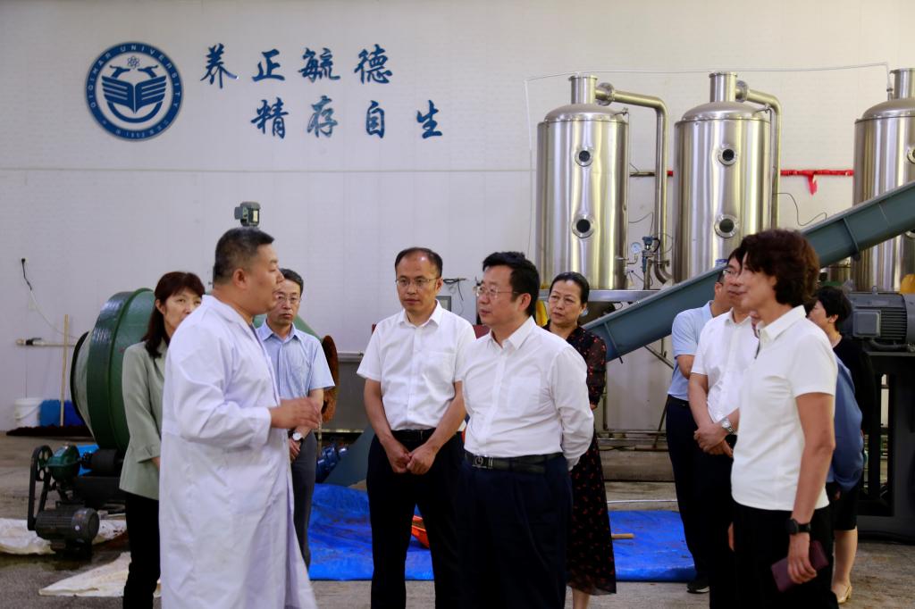 葉玉江一行實地考察了我校農用生物制劑產業技術中試基地等科研創新平臺,認真聽取了相關負責人關于科研創新平臺建設運行及科研成果轉化等方面情況的介紹,深入了解我校在農業科技創新、成果轉化及社會服務等方面的情況,對我校近些年在科研成果轉化等方面的優異成績表示肯定,并對我校高水平科研平臺建設等方面工作提出寶貴指導意見。