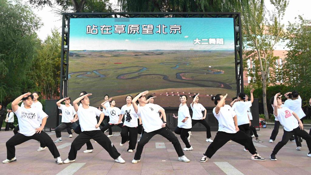 舞蹈編導2022級學生表演的《站在草原望北京》,在活力四射、極富節奏感的旋律中,展現了全國各族人民熱愛家鄉、心系祖國的情懷。