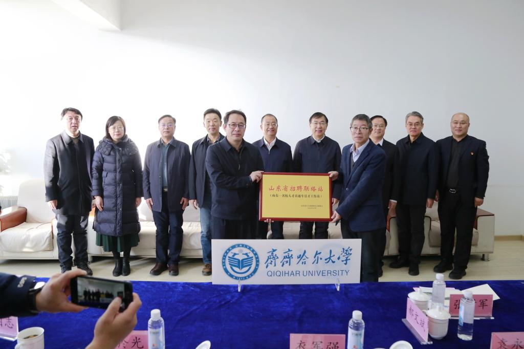 山東省公共就業和人才服務中心人才服務處處長張於光為我校成為山東省招聘聯絡站授牌,張樹軍代表學校接受牌匾。