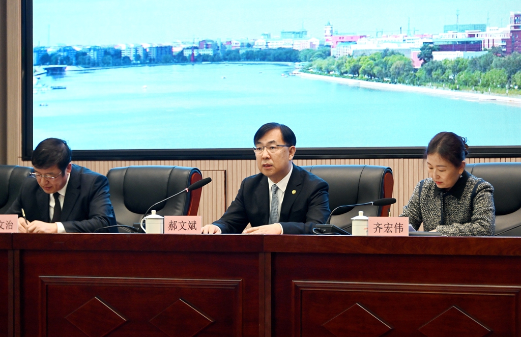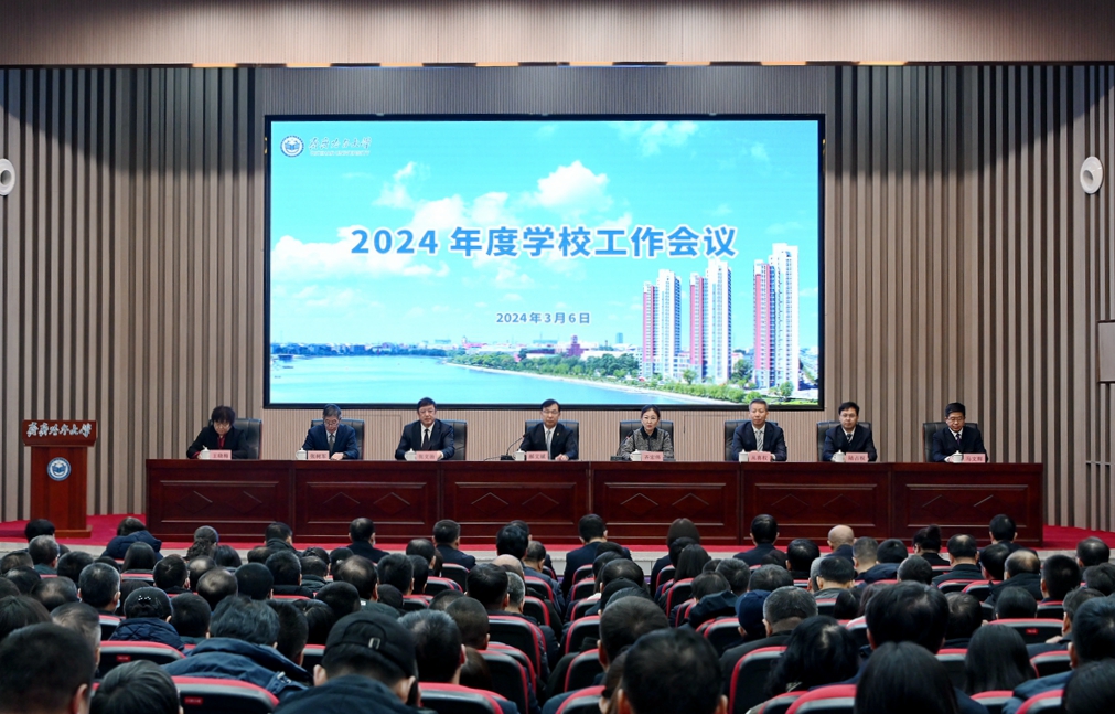 郝文斌強(qiáng)調(diào),高等教育是復(fù)雜的系統(tǒng)工程,加快教育強(qiáng)國(guó)建設(shè)要求高校必須認(rèn)清形勢(shì)任務(wù),把握好高等教育發(fā)揮龍頭作用的發(fā)展邏輯,把握好高等教育有效應(yīng)對(duì)新變局的責(zé)任使命,把握好地方高校轉(zhuǎn)型發(fā)展面臨的趨勢(shì)走向,保持戰(zhàn)略清醒,找準(zhǔn)著力點(diǎn),在深入分析研判中明確學(xué)校發(fā)展主攻方向。2024年是中華人民共和國(guó)成立75周年,是實(shí)現(xiàn)“十四五”規(guī)劃目標(biāo)任務(wù)的關(guān)鍵一年。要對(duì)標(biāo)更高要求、采取務(wù)實(shí)舉措,全力做好“創(chuàng)新教育教學(xué)理念,提升人才培養(yǎng)質(zhì)量”“加強(qiáng)有組織科研建設(shè),推動(dòng)科研高質(zhì)量可持續(xù)發(fā)展”“發(fā)揮學(xué)科龍頭作用,提升學(xué)科建設(shè)水平”“弘揚(yáng)教育家精神,推動(dòng)高素質(zhì)師資隊(duì)伍建設(shè)”“全面落實(shí)立德樹(shù)人根本任務(wù),提升思想政治工作實(shí)效”“堅(jiān)持開(kāi)放辦學(xué),助力打造向北開(kāi)放新高地”“加強(qiáng)管理服務(wù)改革,全面提升學(xué)校治理質(zhì)效”“落實(shí)安全工作責(zé)任制,確保學(xué)校校園安全”“貫徹新時(shí)代黨的建設(shè)總要求,加強(qiáng)黨對(duì)學(xué)校的全面領(lǐng)導(dǎo)”等九個(gè)方面的重點(diǎn)工作。