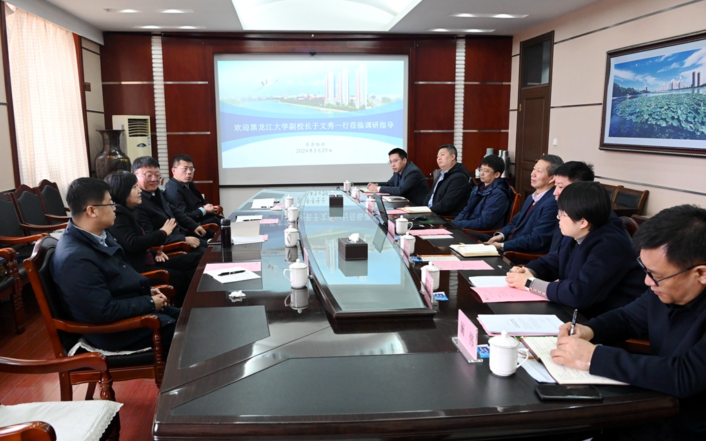 3月29日,黑龍江大學(xué)副校長于文秀一行4人來到我校,對科技成果轉(zhuǎn)化相關(guān)工作展開調(diào)研。副校長、黨委常委叢喜權(quán),相關(guān)平臺負責(zé)人和科研處工作人員陪同調(diào)研。