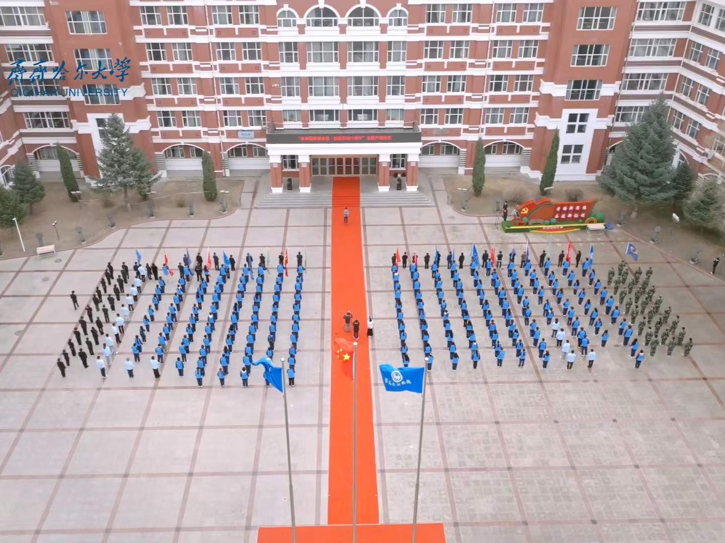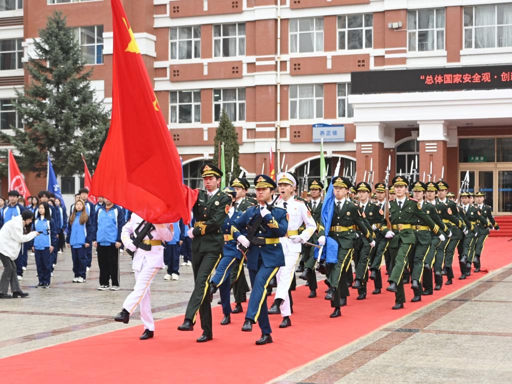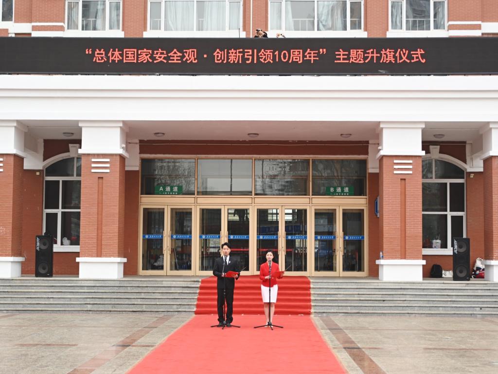 今年是習近平總書記提出總體國家安全觀10周年,今年的4月15日是第九個全民國家安全教育日。為貫徹落實習近平總書記關于加強國家安全教育的重要指示批示精神,深入開展國家安全宣傳教育活動,使關心國家安全、維護國家安全成為全校師生員工的思想共識和行動自覺,4月15日,我校在中區廣場舉行全民國家安全教育日主題升旗儀式暨“總體國家安全觀·創新引領10周年”主題團日活動。學校黨委副書記張文治出席活動,學生工作部(學生處)部(處)長杜海權、武裝部(保衛處)部(處)長趙振華、校團委書記羅霄和相關部門全體干部,各學院(部)團干部、團員代表、學校參軍預備隊代表參加活動?;顒佑闪_霄主持。