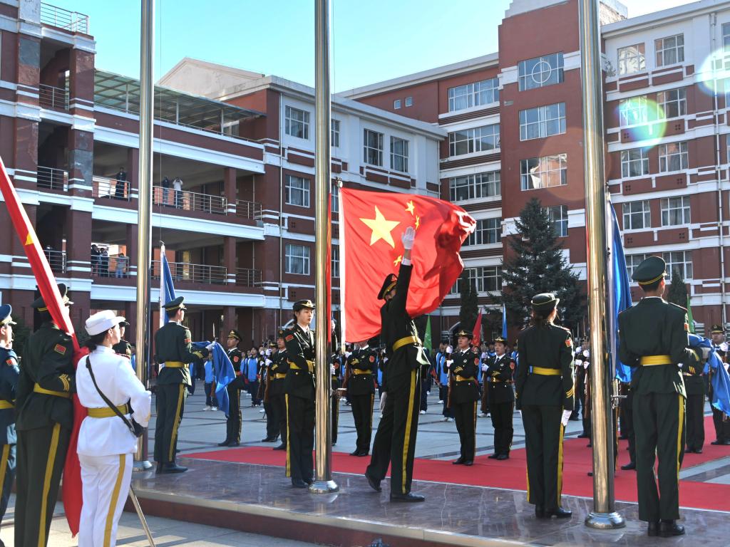 上午7時(shí),升國旗儀式準(zhǔn)時(shí)開始。在莊嚴(yán)肅穆的國歌聲中,五星紅旗緩緩升起,全體師生整齊劃一,向國旗行注目禮,表達(dá)了對(duì)偉大祖國的無限敬愛之情。