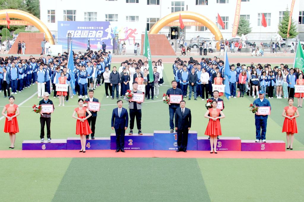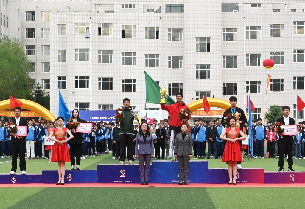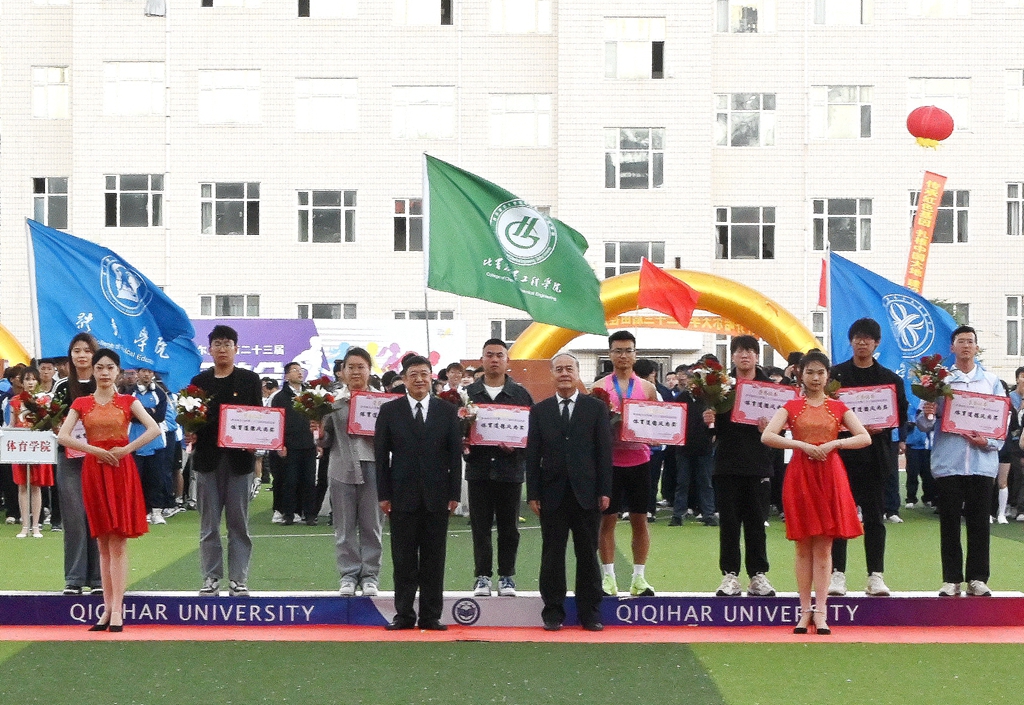 在本屆運動會上,教師教育學院、研究生部、材料科學與工程學院、食品與生物工程學院、計算機與控制工程學院通信與電子工程學院榮獲學生組團體總分前六名;化學與化學工程學院、材料科學與工程學院、機關、生命科學與農林學院、后勤管理處、公共外語教研部榮獲教工組團體總分前六名;教師教育學院、計算機與控制工程學院、食品與生物工程學院分別獲得學生團體操比賽一、二、三等獎;教師教育學院劉宏穎等10名同學榮獲“十佳運動員”稱號;哲學與法學學院、教師教育學院、經濟與管理學院、材料科學與工程學院、文學與歷史文化學院(新聞傳播學院)學院、理學院、輕工與紡織學院、美術與藝術設計學院榮獲“體育道德風尚獎”;體育學院、理學院、齊齊哈爾大學國旗護衛隊榮獲“特殊貢獻獎”;材料科學與工程學院材料化學專業鄭伊杰同學以22秒56的好成績打破了學生男子200米紀錄。