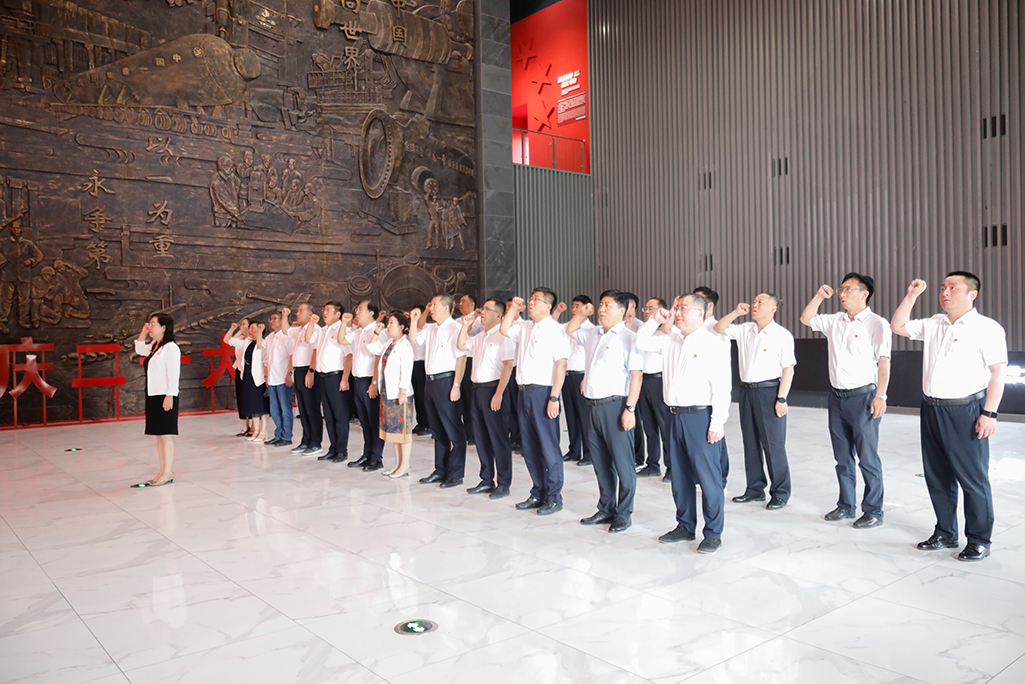 在黨委書記丁宏的領誓下,全體黨員重溫了入黨誓詞。