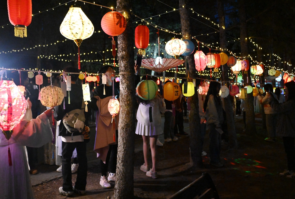月光湖影遙相映,師生情溢齊大園。本次活動(dòng)共劃分“華燈璀璨”“華服錦繡”“華風(fēng)典雅”三個(gè)單元,設(shè)置了DIY花燈、團(tuán)扇制作、古風(fēng)發(fā)飾體驗(yàn)、香包制作、茶藝體驗(yàn)、中國結(jié)制作、書法、投壺等多個(gè)精彩環(huán)節(jié)。老師和同學(xué)們或親手制作花燈,體驗(yàn)傳統(tǒng)工藝的魅力;或?qū)W習(xí)團(tuán)扇制作,感受古典藝術(shù)的韻味;或制作古風(fēng)發(fā)飾,體驗(yàn)穿越時(shí)空的魅力……游園會現(xiàn)場人流涌動(dòng),師生們穿著古風(fēng)華服,在古箏的伴奏下,徜徉在花燈映照下的長廊,共同欣賞著中秋的明月,享受著這溫馨而難忘的時(shí)刻。這一夜的美麗環(huán)湖大學(xué),守正與創(chuàng)新交融,古典與現(xiàn)代相遇,繁華與靜怡共存,成為了共度佳節(jié)的每一位師生最美好的記憶。