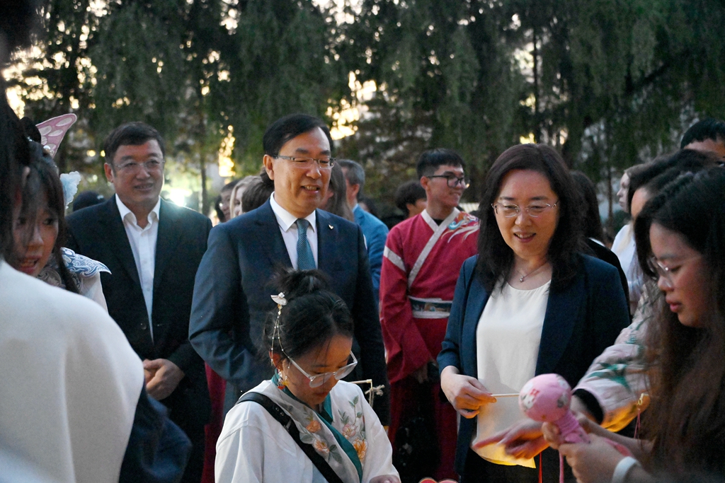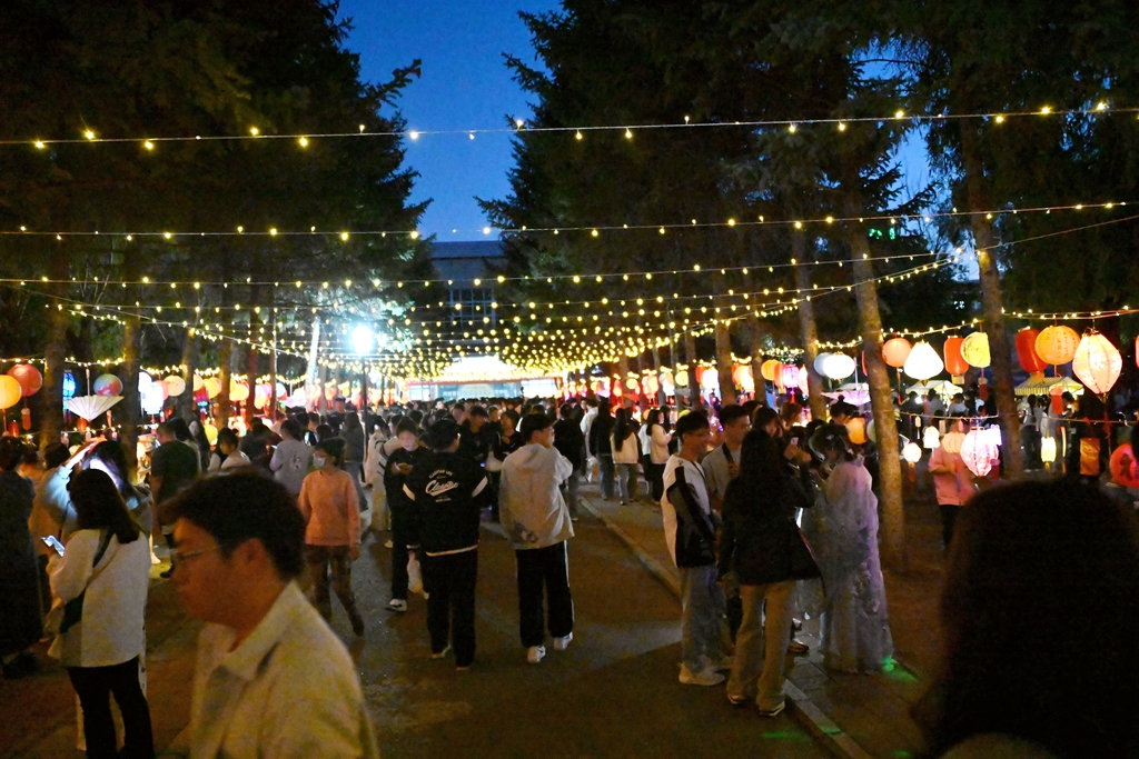 為學(xué)習(xí)宣傳貫徹習(xí)近平文化思想和習(xí)近平總書記在全國教育大會上的重要講話精神,貫徹落實(shí)黨的二十大關(guān)于新時(shí)代文化建設(shè)的決策部署,堅(jiān)持培育和踐行社會主義核心價(jià)值觀,引領(lǐng)廣大青年傳承和弘揚(yáng)中華優(yōu)秀傳統(tǒng)文化,打牢深厚持久的文化自信,助力建設(shè)中國式現(xiàn)代化,9月17日晚,學(xué)校在東區(qū)樹蔭長廊舉辦了花燈華服游園會。校領(lǐng)導(dǎo)丁宏、郝文斌、張文治、叢喜權(quán)、張樹軍及相關(guān)職能部門負(fù)責(zé)人來到游園活動(dòng)現(xiàn)場,與師生共同歡度中秋佳節(jié)。