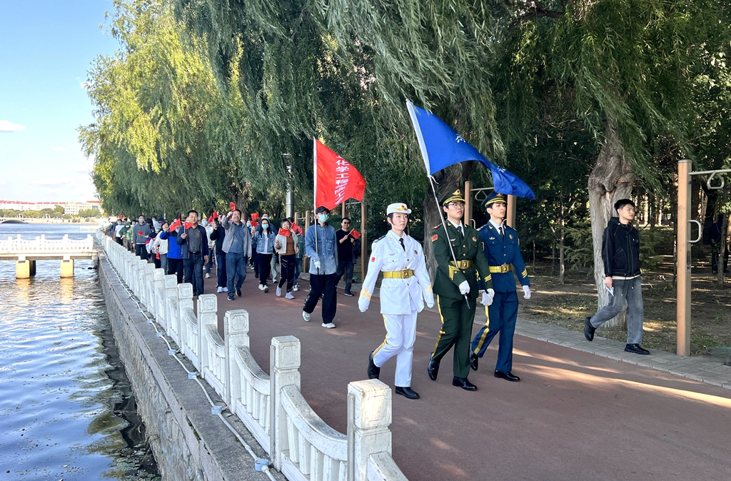 來自全校25個基層工會的一千余名會員代表參加活動,伴隨著發令槍聲,各基層工會依次來到勞動湖科技之光廣場列隊出發。環湖甬道上旗幟飄揚、人影攢動、身姿矯健,大家在沿途的地標性建筑前打卡、拍照,齊齊哈爾大學教職工環湖健康徒步走活動成為秋日勞動湖畔一道亮麗的風景線。