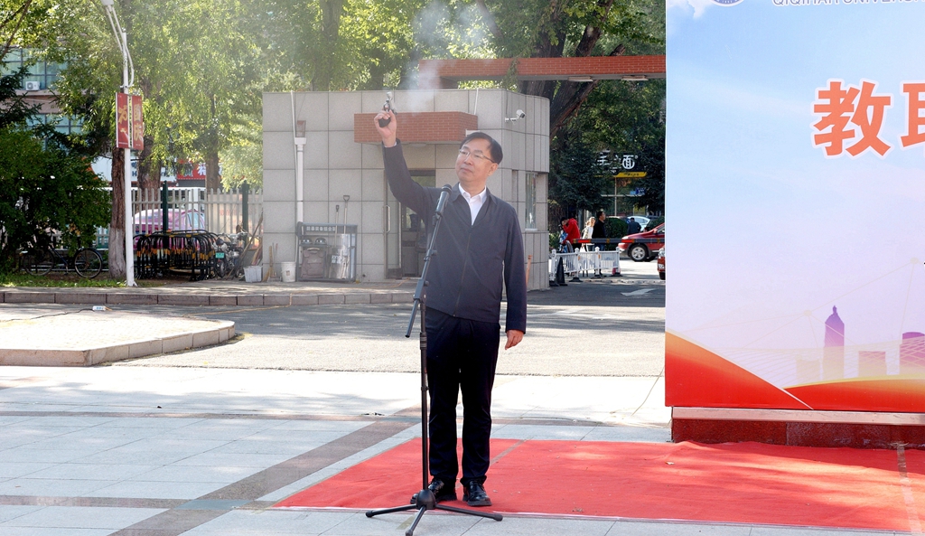 校黨委書記丁宏在致辭時指出,75年來,在中國共產黨的領導下,全國各族人民團結一心、同舟共濟,戰勝了無數艱難險阻,實現了從站起來、富起來到強起來的歷史性飛躍,中國特色社會主義進入新時代。有著72年辦學歷史的齊齊哈爾大學坐落于勞動湖畔,素有“環湖大學”的美譽,這一池碧水見證了學校的發展和變遷,也為巍巍學府增添了無限的秀美與靈氣。教職工環湖健康徒步走是我校傳統特色體育活動,深受教職工的歡迎。希望廣大教職工在此次健步走活動中,欣賞勞動湖畔秋日的美景,感受健康運動帶來的身心愉悅,在集體活動中增強凝聚力,在攜手并肩前行中增進團結,進一步激發愛校榮校、愛崗敬業、攻堅奮進的精神動力,爭做學校高質量發展的參與者、推動者、宣傳者。