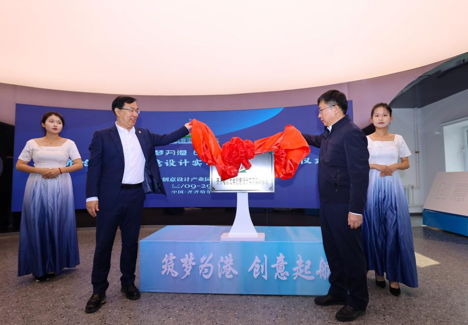 儀式上,郝文斌與齊齊哈爾市委常委、宣傳部部長鄒震遠共同為齊齊哈爾大學創意設計實習實訓基地揭牌。