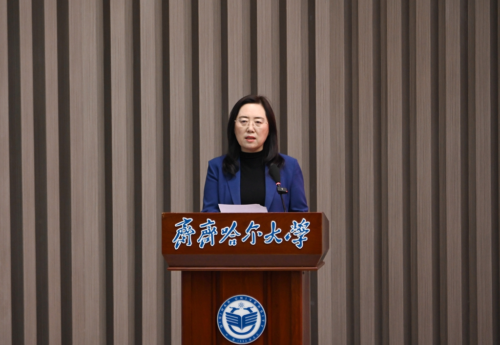 丁宏在致辭中表示,在全省率先發(fā)起成立“黨建引領(lǐng)大中小學(xué)思想政治教育一體化建設(shè)聯(lián)盟”,是貫徹落實(shí)黨的二十屆三中全會(huì)和全國(guó)、全省教育大會(huì)精神的具體舉措和實(shí)際行動(dòng),是我們校地之間合作推進(jìn)大中小學(xué)思想政治教育一體化建設(shè)雙向奔赴的共贏之舉和創(chuàng)新之舉。我校將著力在“強(qiáng)體系、抓統(tǒng)籌、循規(guī)律、促銜接”上下功夫,與齊齊哈爾市共同推動(dòng)大中小學(xué)思想政治教育一體化建設(shè)取得實(shí)績(jī)和實(shí)效。一是共同構(gòu)建“黨建引領(lǐng)”大思政育人新生態(tài);二是共同打造“1+N”模式一體化育人協(xié)同鏈;三是共同建設(shè)“校地聯(lián)動(dòng)”一體化育人合作群。她指出,推進(jìn)大中小學(xué)思想政治教育一體化建設(shè)是黨中央和習(xí)近平總書記賦予新時(shí)代學(xué)校的重要政治任務(wù),使命光榮、責(zé)任重大。面向未來,我校將與聯(lián)盟各成員單位攜手打造大中小學(xué)思想政治教育一體化建設(shè)的“區(qū)域樣本”,為構(gòu)建一體化建設(shè)的“龍江范本”貢獻(xiàn)力量,引領(lǐng)帶動(dòng)更多學(xué)校合力推動(dòng)“大中小學(xué)思想政治教育一體化建設(shè)”,為龍江高質(zhì)量發(fā)展、可持續(xù)振興作出新貢獻(xiàn)。