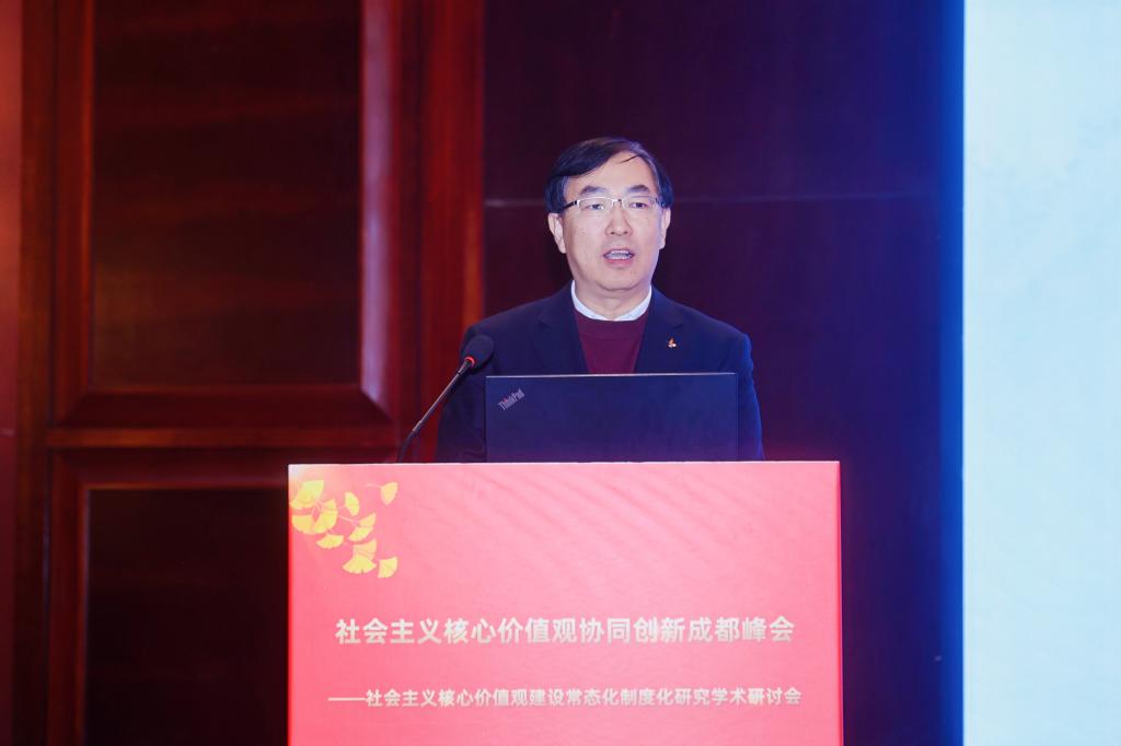 我校校長郝文斌教授受邀參會并作主旨報告。他以《新時代培育和踐行社會主義核心價值觀的重要問題》為主題,從深刻把握習(xí)近平總書記關(guān)于培育和踐行社會主義核心價值觀的重要論述,新時代培育和踐行社會主義核心價值觀的重要性緊迫性、重點(diǎn)場域、關(guān)鍵性問題和實(shí)踐路徑等五個方面闡述了觀點(diǎn)和見解。郝文斌還參加了會議分論壇,同與會學(xué)者進(jìn)行深入研討、廣泛交流,共同探討社會主義核心價值觀建設(shè)常態(tài)化制度化等理論和實(shí)踐問題。