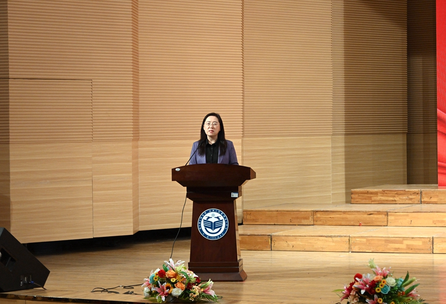 隋熙鳳向師生們講述了北大倉從昔日的小作坊成長為年利稅破三億的大型企業的歷程。她表示,多年來,企業初心如磐,以助學為槳,托舉寒門學子逐夢學海。她以自身從會計小白到企業管理者的奮斗故事為引,鼓勵年輕人以知識為帆,在學習中沉淀,于困境中淬煉自信,以奉獻之心擁抱璀璨人生,共赴美好未來。