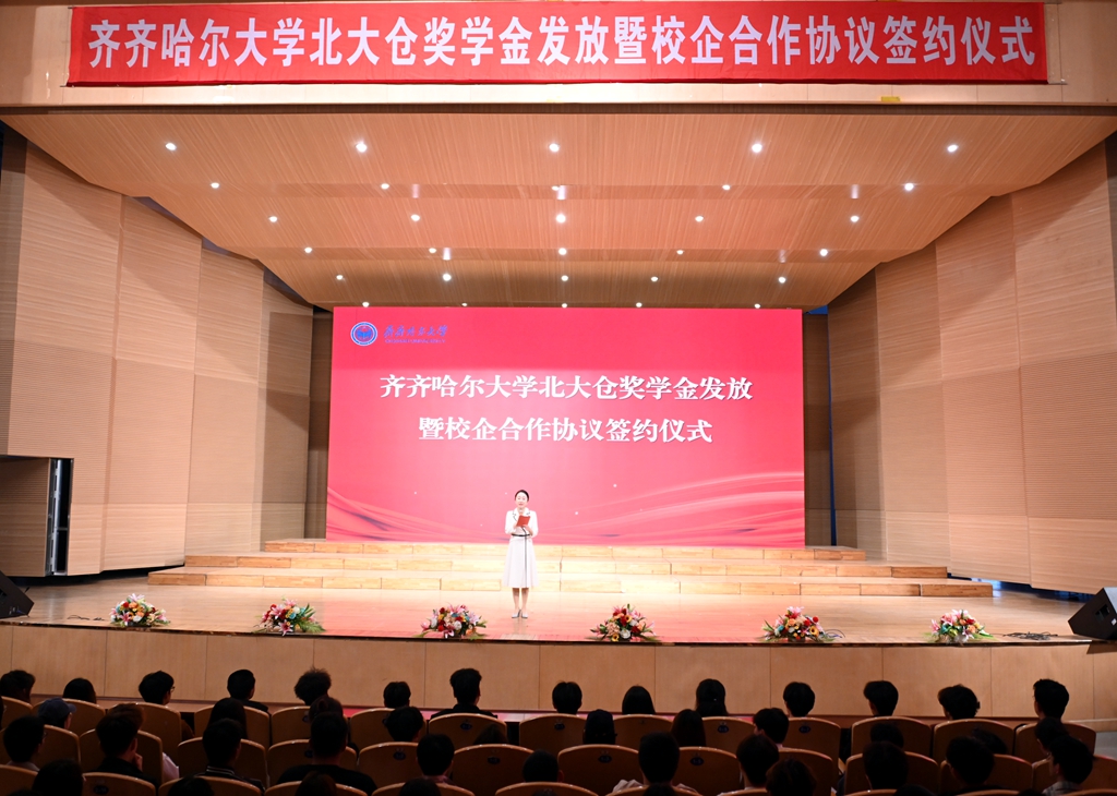 發布日期:2025-05-15 點擊量:5月14日下午,齊齊哈爾大學北大倉獎學金發放暨校企合作簽約儀式在音樂廳舉行。
