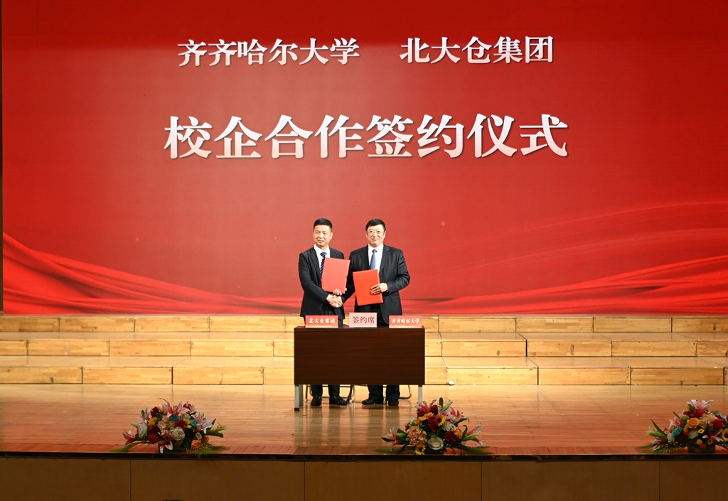 北大倉集團有限公司黨委書記、總裁隋熙鳳,共青團齊齊哈爾市委副書記李南希,我校黨委書記丁宏,校長、黨委副書記郝文斌,黨委副書記張文治,相關職能部門負責人,校企合作學院書記、院長等領導嘉賓與師生代表共聚一堂,見證校企合作新篇章的開啟。