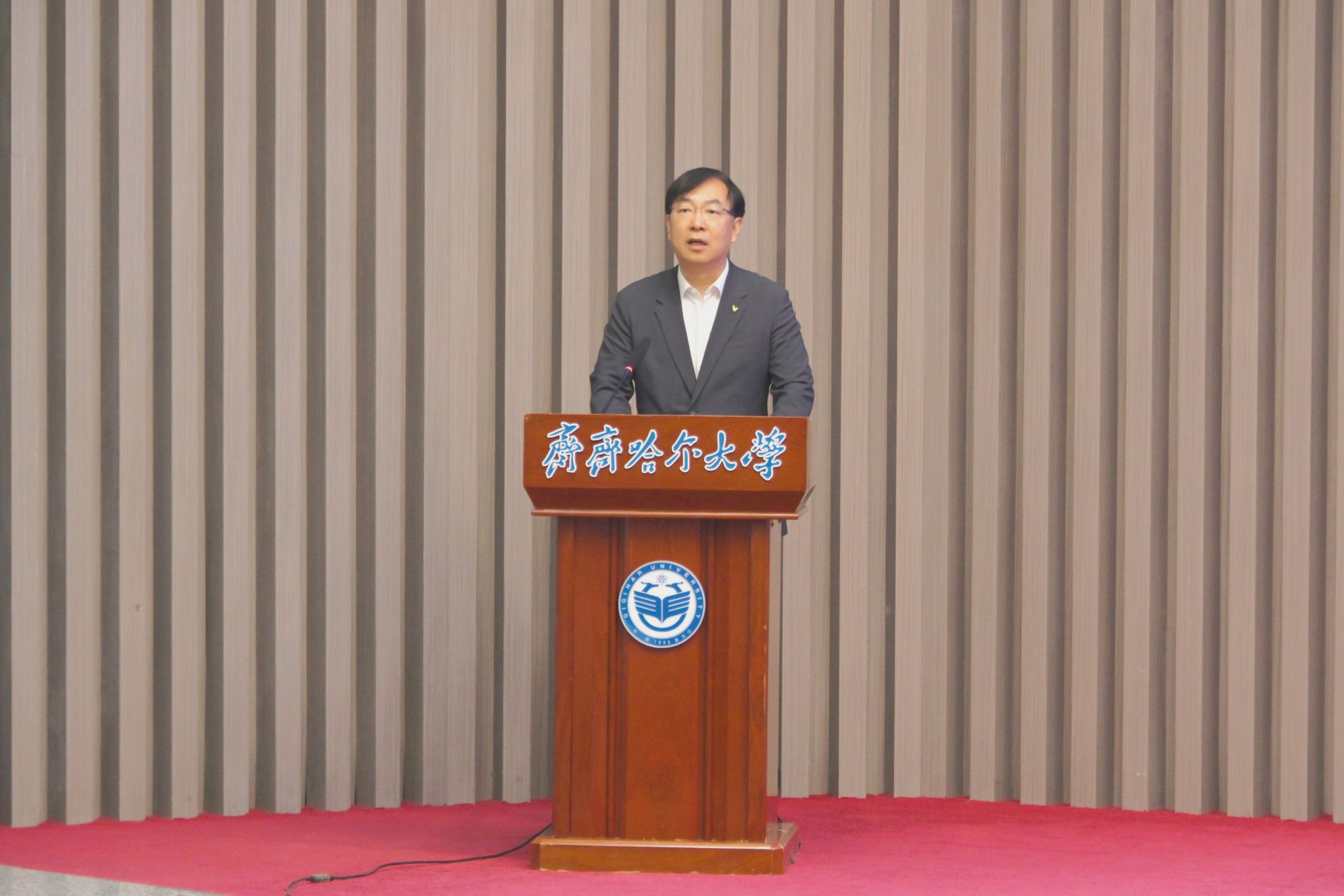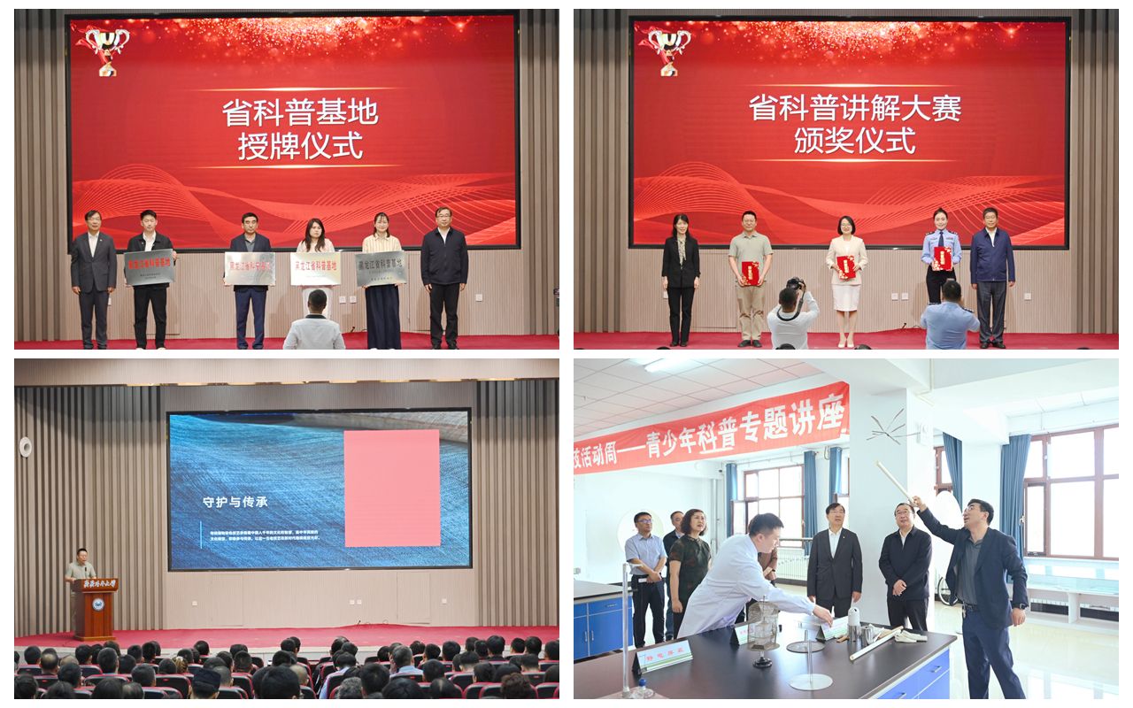郝文斌致歡迎詞,他指出,2025年全國科技活動周的主題為“矢志創新發展 建設科技強國”,旨在通過開展群眾性科學技術活動,激發全社會創新創造活力。全國科技工作者日是廣大科技工作者的節日,重在增強科技工作者的獲得感榮譽感和報國為民的使命感緊迫感。學校將以此為契機,依托學校科技、科普、人才資源,組織系列活動,大力弘揚科學家精神和教育家精神,深入踐行新質生產力理念,為助力龍江高質量發展貢獻齊大力量。