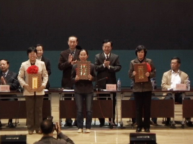 出席慶祝大會的校領導為獲獎集體和個人代表頒了獎。