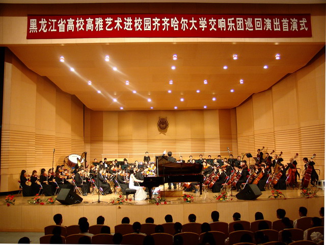 據了解,從2005年開始,教育部決定每年在全國普通高校開展主題性的高雅藝術進校園活動。2006年高雅藝術進高校以“走進大師、聆聽經典、陶冶情操、提高素養”為主題,以交響音樂為載體,目的在于進一步推進高校高雅藝術的普及工作,促進當代青年向真、向善、向美,得到全面和諧的發展。教育部將組織一批交響樂團在22個省的高校做230場巡回演出,我校交響樂團被教育部指定為黑龍江省的唯一巡回演出單位,將于本月15日起程赴哈爾濱、大慶、佳木斯等地的10所高校進行巡回演出和講解,使更多的大學生接受高雅藝術的熏陶。