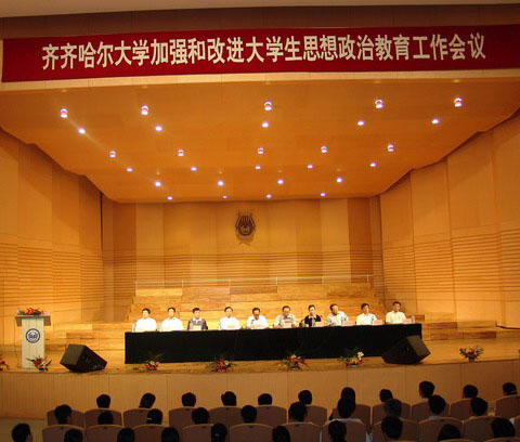 會議首先由校黨委副書記王鳳琴宣讀了黨委和行政《關(guān)于印發(fā)〈齊齊哈爾大學關(guān)于進一步加強和改進大學生思想政治教育的實施意見〉的通知》。