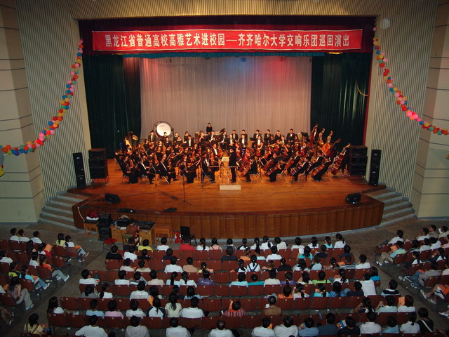 昨晚,我校交響樂團在哈爾濱商業大學學生禮堂進行了在哈高校的第四場巡回演出。