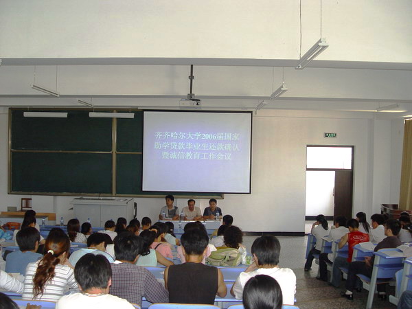 中國銀行齊齊哈爾分行的負(fù)責(zé)人為同學(xué)們講解了國家助學(xué)貸款還款確認(rèn)手續(xù)的有關(guān)事宜,耐心而詳細(xì)地解答了他們提出的有關(guān)問題,并認(rèn)真指導(dǎo)學(xué)生辦理相關(guān)確認(rèn)手續(xù),以便使獲得國家學(xué)貸款的2006屆畢業(yè)生順利畢業(yè)。