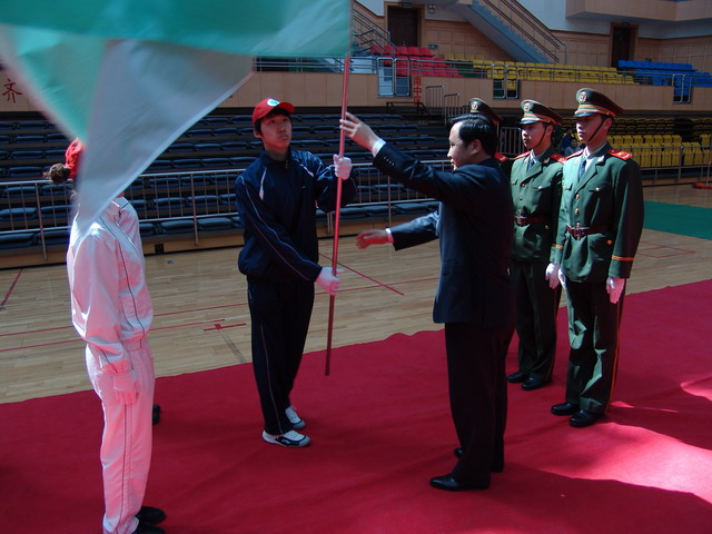 會上,市委常委、市政法委書記沃嶺生向我校大學生消防志愿者協會授了會旗。之后,我校大學生消防志愿者協會的代表在會上宣讀了協會宣言。