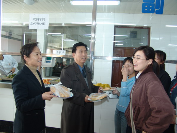 11月2日上午11時,市民族宗教事務局副局長郅文魁、經濟科科長鄭雙全與市“瑞和祥”清真食品坊馬經理、杜經理等一行帶著回族同胞傳統的清真食品在我校黨委副書記王鳳琴、宣傳部部長李敏義等陪同下,來到我校東區第二學生餐廳回民廳慰問在我校學習的回族學生,祝他們“爾代節”快樂。回民學生對市、校領導對他們的慰問表示衷心的感謝,決心努力學習,不辜負領導和學校對他們的厚望,以優異的成績報效祖國。