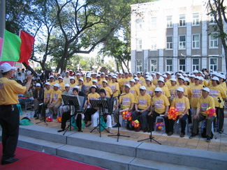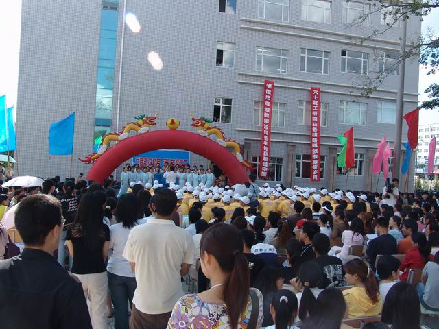 6月10日下午,我校人文樓東側的校園廣場彩旗招展,樂曲悠揚,“六十載江橋鴿駐老驥心騏放歌激情歲月,半世紀濱湖鶴翔芳桃李艷傳薪和諧中國”的條幅在夏日陽光下鮮明醒目,人文學院與離退休工作處聯合 “共建和諧校園 同創美好明天”的大型廣場文藝演出隆重舉行,校領導唱江華、王鳳琴、姜守訓、張忠恒、鄭喜群等出席,離退休老干部合唱團及校黨委組織部、宣傳部、離退休工作處、校團委等部門有關負責人和人文學院黨政領導、師生等歡聚激情廣場,傾情歌唱。