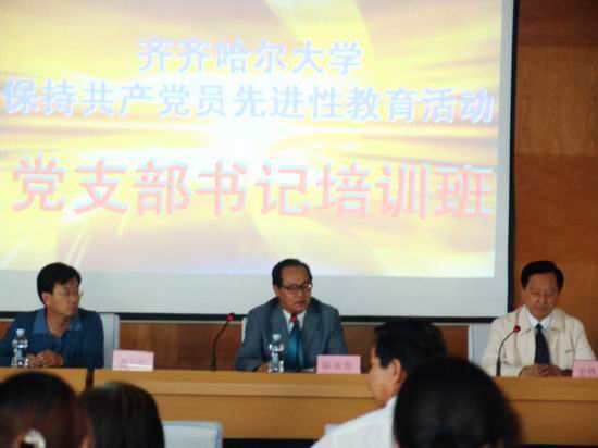 根據市委部署和《中共齊齊哈爾大學委員會保持共產黨員先進性教育活動實施方案》的要求,我校先進性教育活動集中學習教育從2005年9月14日開始,到9月30日結束。此次舉辦的基層黨支部書記培訓班是集中學習教育階段“第一專題:提高認識,統一思想,增強保持共產黨員先進性的自覺性”的重要內容之一。參加會議人員認真寫好學習筆記,做好記錄;認真學習先進性教育活動的有關文件,深入理解開展先進性教育活動的重要性和必要性,增強責任意識,掌握方法步驟,明確目標任務,為搞好下一步先進性教育奠定了良好基礎。