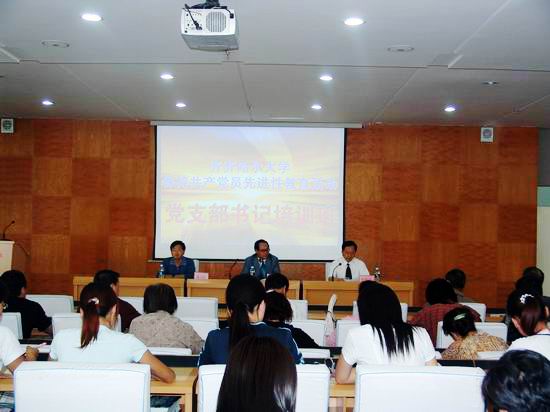 9月15日下午4:00,學校黨委先進性教育活動領導小組在西區主樓7樓學術報告廳舉辦了黨支部書記培訓班,校黨委書記、校保持共產黨員先進性教育活動領導小組組長陳承貴、校黨委副書記、校保持共產黨員先進性教育活動領導小組副組長史鐵成、校黨委組織部部長、校保持共產黨員先進性教育活動領導小組辦公室主任蓋元臣出席培訓班,學校先進性教育辦公室及各工作組成員、各基層黨委、黨總支、直屬黨支部和基層黨支部書記參加了培訓班學習。