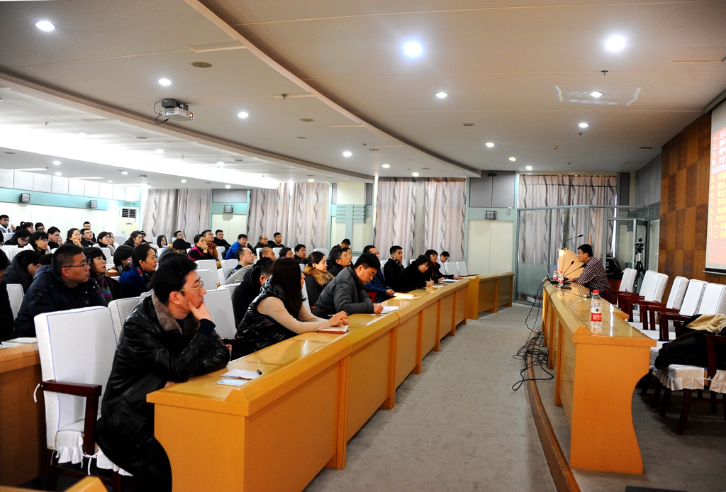 12月26日下午,全省教育系統學習宣傳貫徹黨的十九大精神“百人宣講團”報告會在我校西區主樓七樓學術報告廳舉辦,學校黨委邀請全省教育系統學習宣傳貫徹黨的十九大精神“百人宣講團”成員、我校馬克思主義學院馬克思主義基本原理教研部主任王圣禎教授作黨的十九大精神輔導報告。學生工作部(學生處)、校團委、就業指導處全體工作人員,各學院主管學生工作的黨委書記、副書記副院長、全體輔導員以及我校第五期團學骨干日新班學員參加了報告會。會議由校黨委宣傳統戰部部長王曉梅主持。
