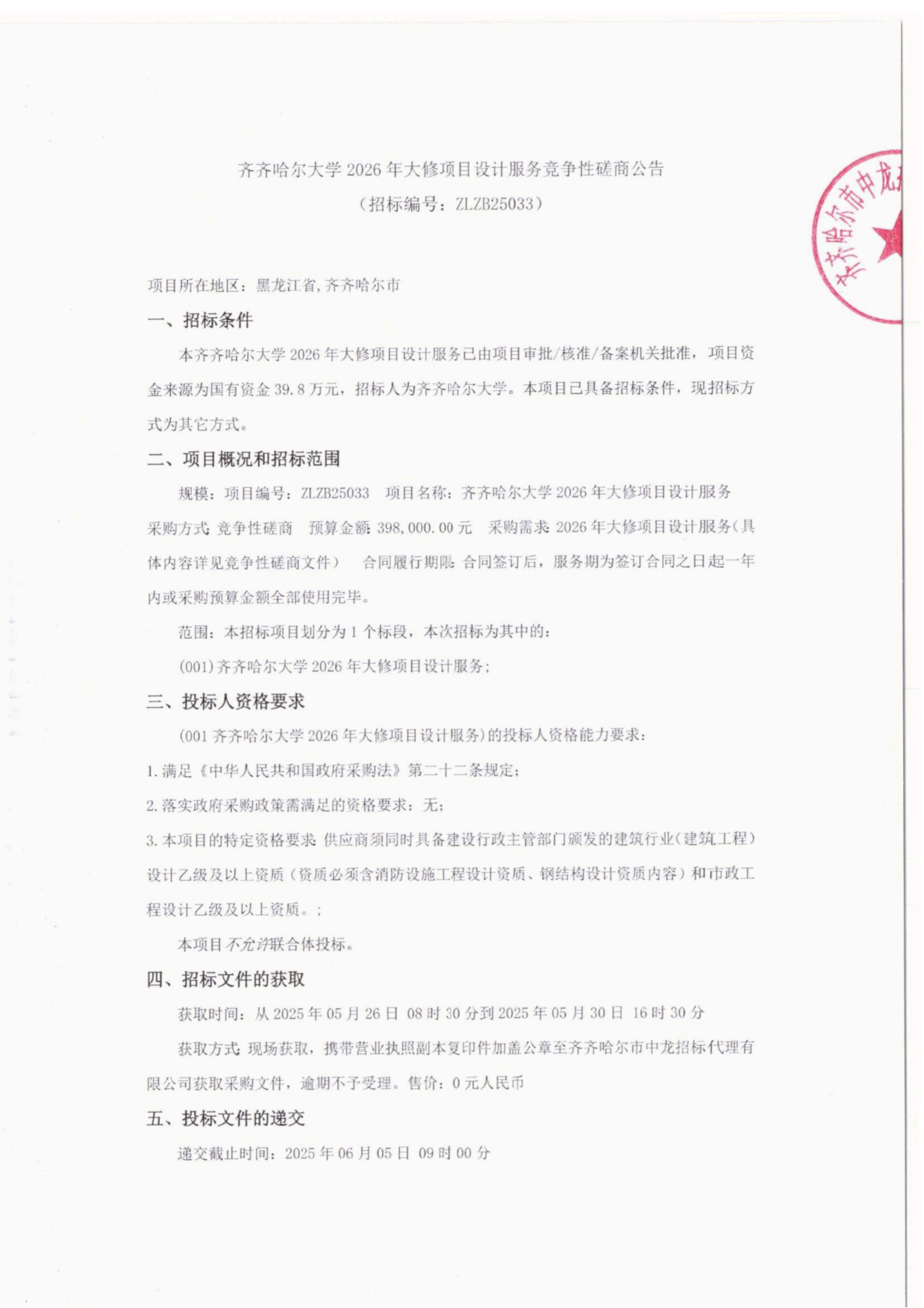 上一條:齊齊哈爾大學清冰雪服務-競爭性談判公告(轉自中國招標投標公共服務平臺)