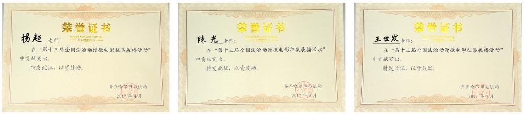 發布日期:2017-04-12 點擊量:4月11日,因在“第十三屆全國法治動漫微電影征集展播活動”中表現突出,我校蘭寧、楊磊、王振宇等17名同學,楊超、陳光、王世發3位指導教師獲齊齊哈爾市司法局表彰。