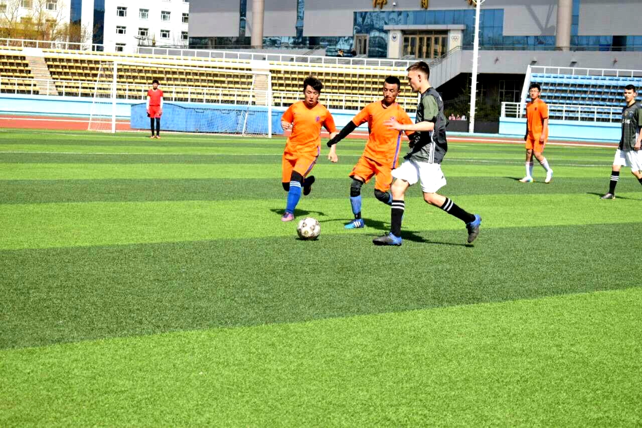 比賽結束后,記者采訪了國際教育學院的運動員——尼基塔,他說:“這是我們學院第二次比賽,很開心也很榮幸我們贏得了本次比賽,踢完整場比賽我挺滿足的,也很感謝我的隊友們,大家都非常努力。我從小就非常喜歡足球,在本場比賽中,我主要負責中場,有時沖到前鋒給隊友傳球。我們隊主要根據德國國家男子足球隊的戰術,也是因為想向德國國家男子足球隊看齊。當然,我也很感謝學校給我們的這次足球比賽的機會,讓我們能夠綻放自己的光芒!”
