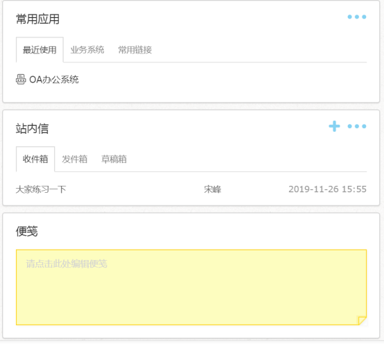 4.這里的“常用應(yīng)用”就是日常使用的辦公辦事系統(tǒng)。“站內(nèi)信”就是智慧校園內(nèi)部郵箱可以快捷發(fā)送接收,相對(duì)公網(wǎng)郵箱很好的保護(hù)信息的外泄!這里的“便簽”功能給你記錄一些臨時(shí)文檔記錄提供方便!