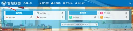 (1)點(diǎn)擊導(dǎo)航中辦事大廳后,會(huì)顯示出學(xué)校各部門(mén)提供的服務(wù)。