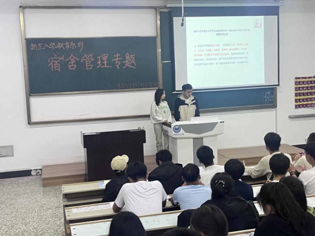 為進一步加強我院新生宿舍安全管理,增強學生安全意識,排除安全隱患,切實維護良好的校園秩序,給我院新生營造一個良好、安全的學習和生活環境。我院于2023年9月6日在守正樓103階梯教室組織舉辦新生入學教育系列之“宿舍安全管理”專題講座。主講人為我院學生會紀檢部部長隋赫以及權益部部長王婧函,我院全體23級新生參加。